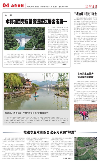 近日,省河湖长制办公室公布浙江省2024年度“幸福母亲河”优秀案例名单,我县松源溪榜上有名。