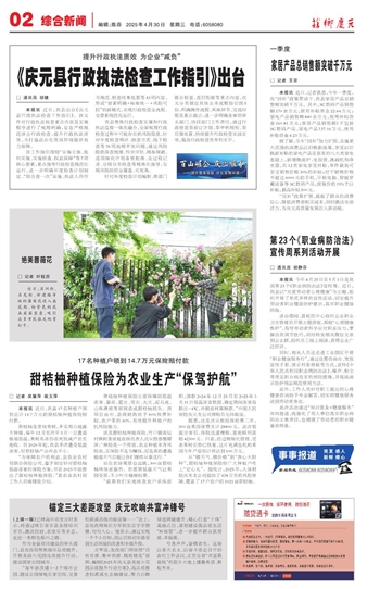 本报讯 近日,我县出台《庆元县行政执法检查工作指引》。该文件对行政执法检查重点内容及实施程序进行了梳理明确,旨在严格规范涉企行政检查,提升行政执法质效,为打造法治化营商环境提供有力保障。