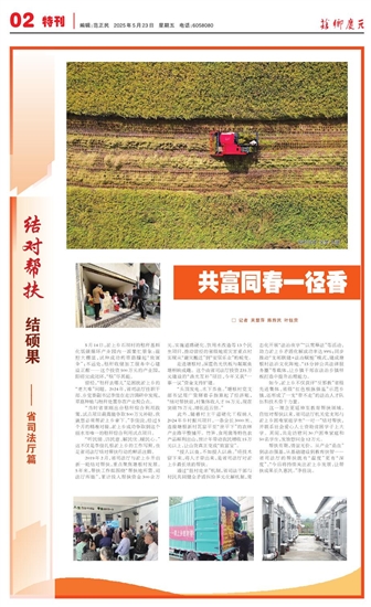 帮扶有期,情谊无价。从产业“造血”到法治强基,从基础建设到教育扶智……省司法厅的帮扶既有“温度”更有“深度”。“今后将持续关注淤上乡发展,让帮扶成果长久惠民。”李佳说。