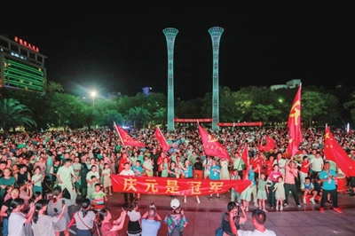 这一夜,胜利的呐喊和感动的泪水交织在一起,划破整片夜空,“哪怕喉咙嘶哑,也要喊出庆元的声音。”